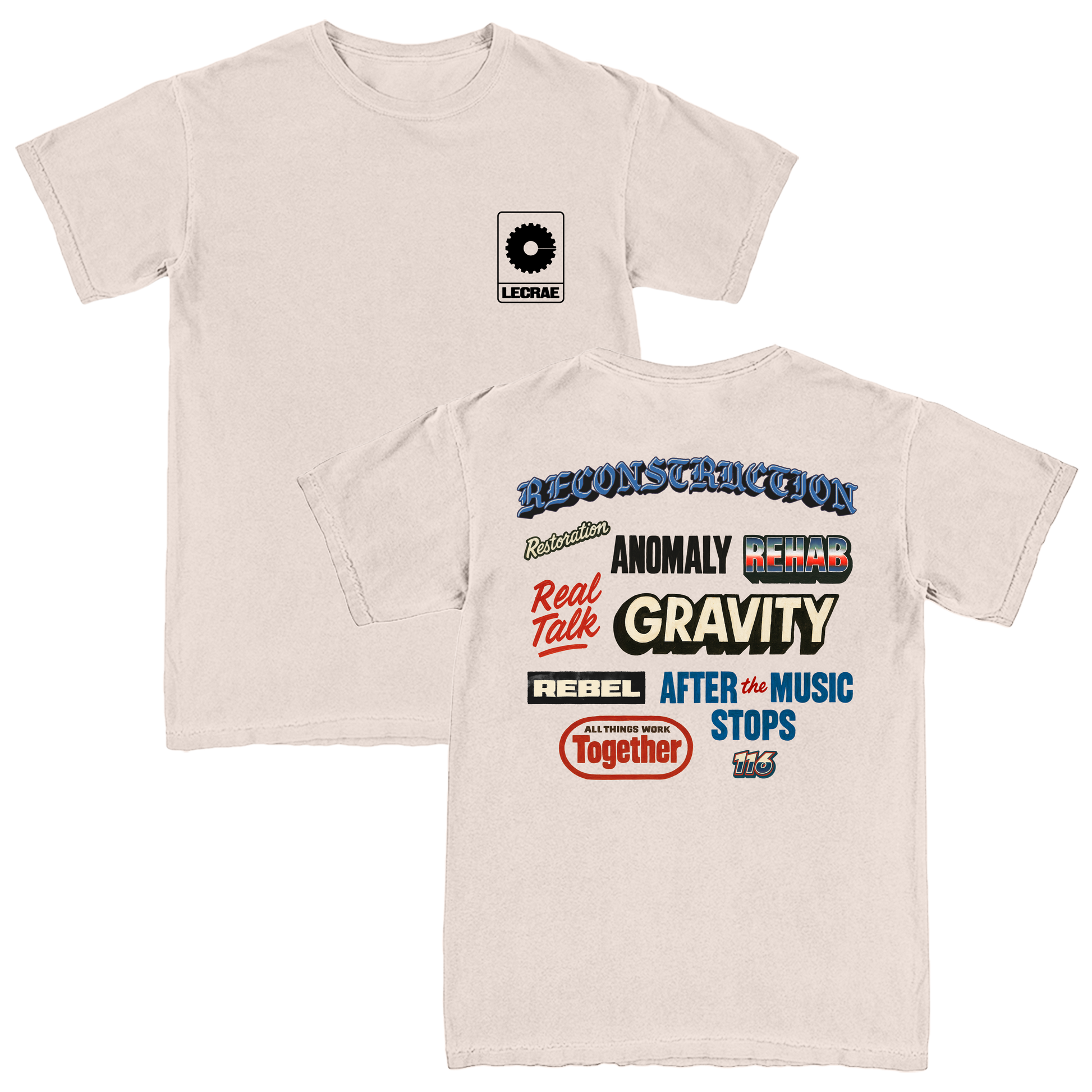 Album Tee in "natural" with front and back print.