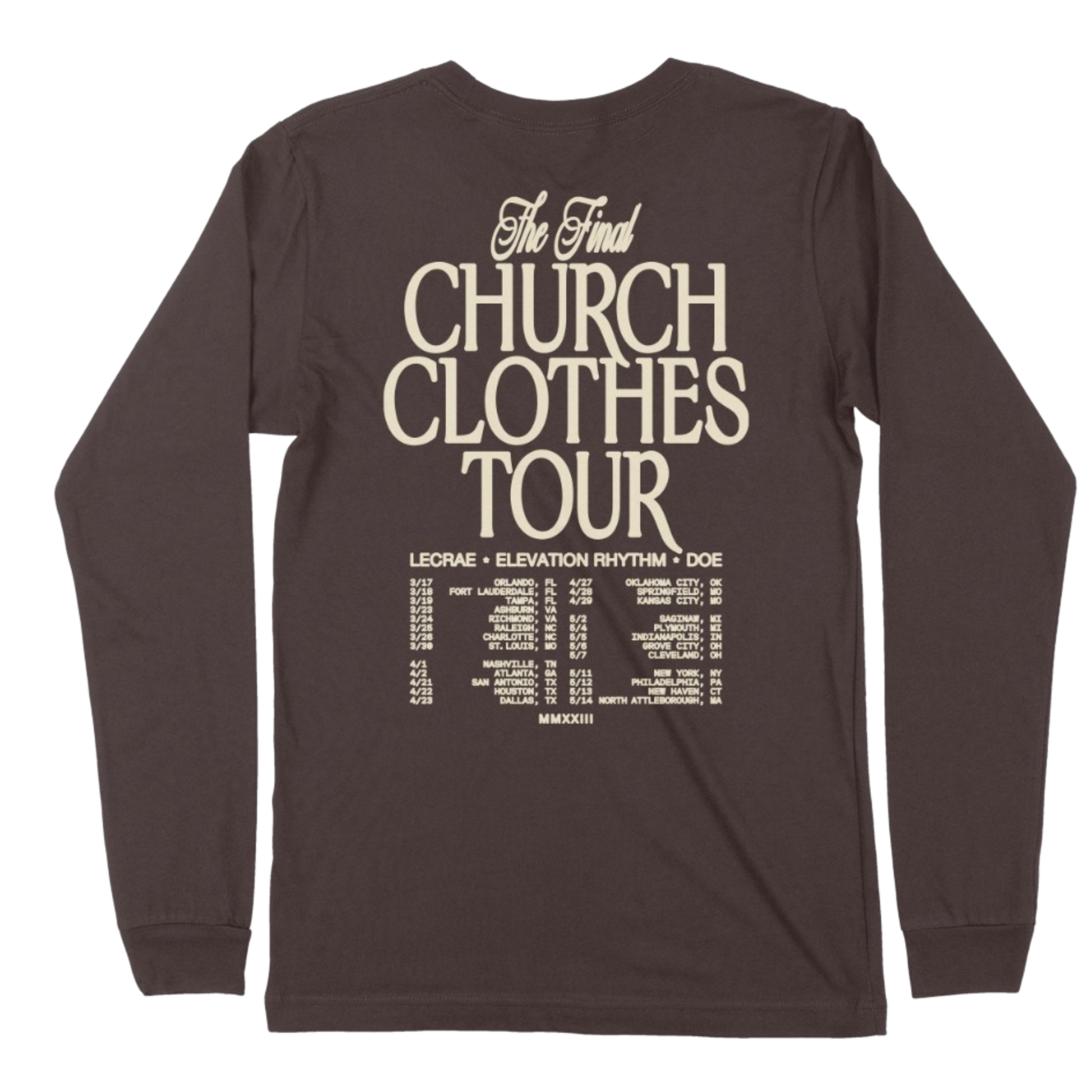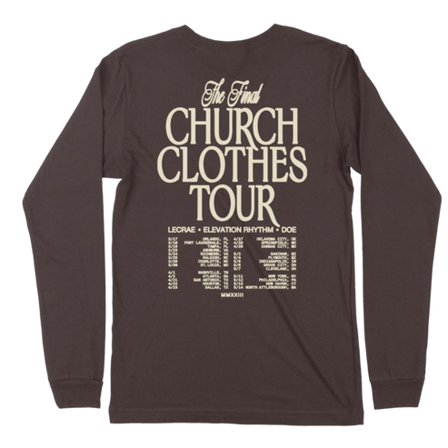 Lecrae Church Clothes 4 Long Sleeve in dark chocolate with front and back print.
