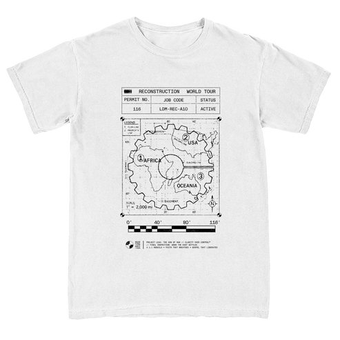 Reconstruction World Tour Tee with front design and tour dates on back.