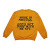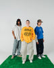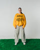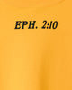 This heavy blend golden crewneck is made of a 50/50 poly-cotton blend and features the phrase above screen-printed with texture on the front and back of neck, in addition to the following: